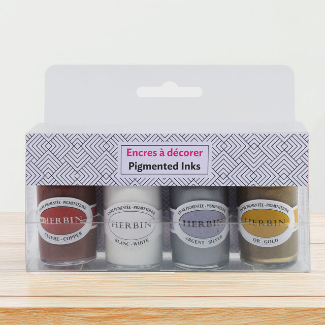 Exquisitely rich opaque inks with high pigment content. The gold and silver contain actual metallic pigments. This decorative ink is best suited for wide nibs, brushes and calames. The jewel like colours make a dramatic impact on darker coloured papers.