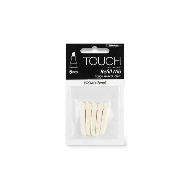 #SHINHAN TOUCH TWIN MARKER NIB REPLACEMENT 6mm BROAD CHISEL - PACK 5. Replacement 6.0mm wide chisel point nib for Shinhan Touch Twin marker. |