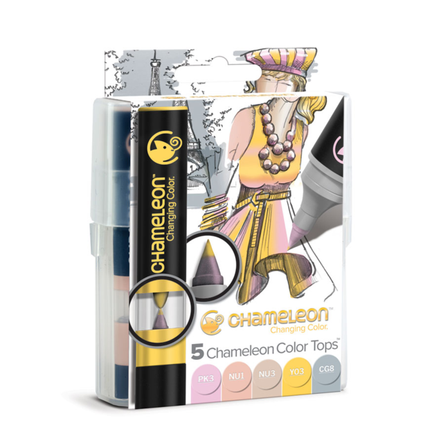 *CHAMELEON PASTEL COLOR TOPS SET OF 5. Pastel set includes the colours : Warm Sunset YO3, Fawn NU3, Bisque NU1, Bubble Gum PK3, Cool Gray CG8, |