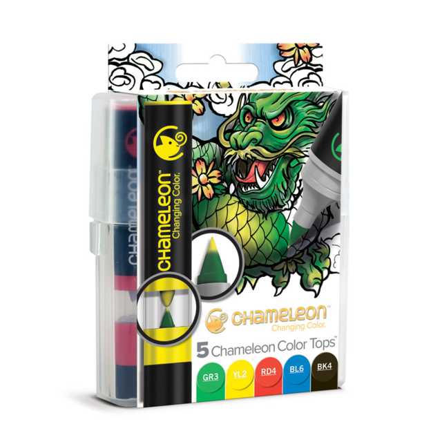 *CHAMELEON PRIMARY COLOR TOPS Set of 5. Primary set includes the colours :Crimson Red RD4, Summer Sun YL2, s Royal Blue BL6, Grass Green GR3, Deep Black BK4. Instruction and idea guide also included. |