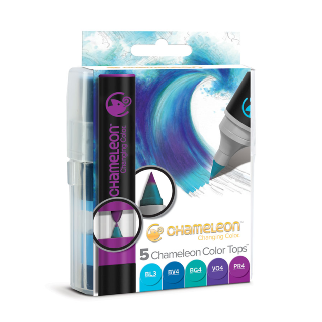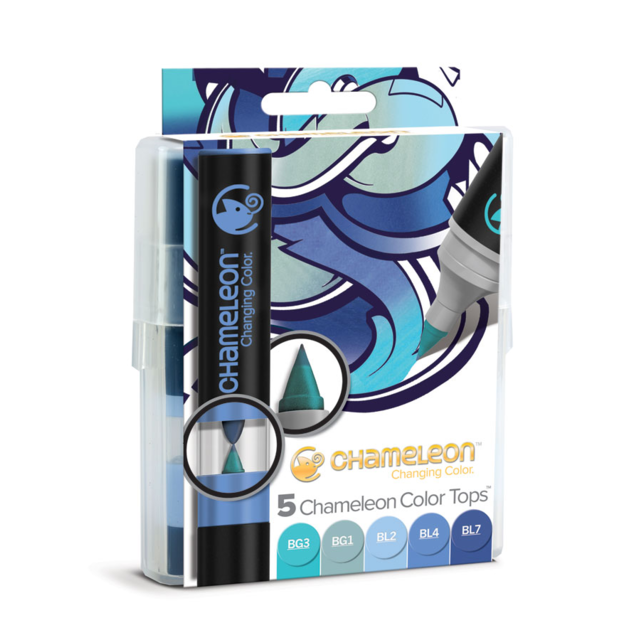 *CHAMELEON BLUE COLOR TOPS Set of 5. Blue Tone set includes the colours : BG1 Lagoon, BG3 Turquoise, BL2 Baby Blue, BL4 Cornflower Blue, BL7 Indigo. |