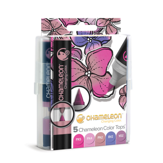 *CHAMELEON FLORAL COLOR TOPS Set of 5. Floral Tone set includes the colours :BV2 Lavender, PK2 Dusty Rose, PK4 Peony Pink, PK5 Fuchsia, VO2 Mauve |