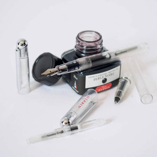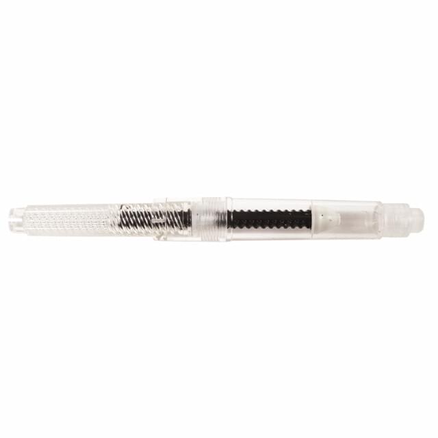 Smooth-writing Fountain pens featuring medium-sized, steel nib with iridium tip. Both pens use standard international fountain pen ink cartridges while the pen with the convertor allows the user to use any bottled fountain pen ink once it is fitted. Clear plastic barrel shows the current ink colour and ink level.