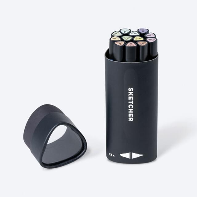 *MOLOTOW SKETCHER TWIN MARKER PASTEL SET. Contains one marker each in cream, apricot light, coral middle, mauve, tender pink, violet light, blueberry light, frost blue, Tahitian blue, menthol light, mint and hemp light. |