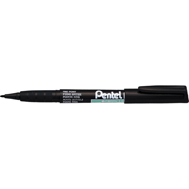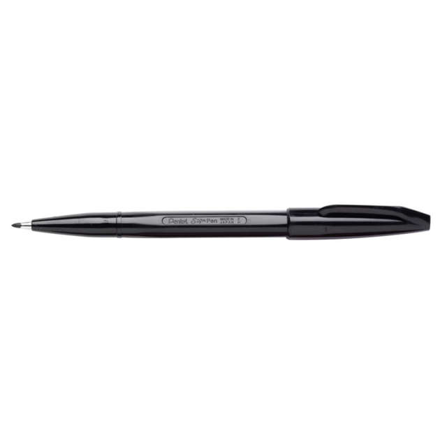 PENTEL SIGN PEN BLACK Box 12. The designers and artists choice: perfect for graphics and illustrations.The 0.8mm medium fibre tip guarantees an even flow of ink. Manufactured from 83% recycled materials. |