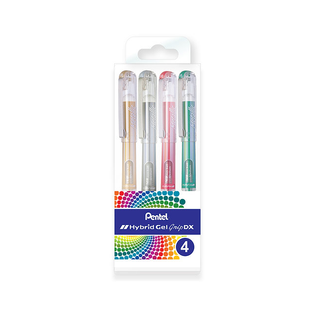 PENTEL HYBRID DELUXE METALLIC GELGRIP ROLLER PEN SET 4.