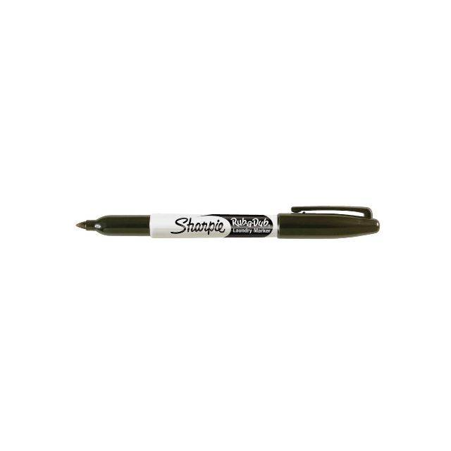 Sharpie Rub-a-Dub laundry marker contains specially formulated ink is designed to stand up to detergents and stays permanent on fabric throughout washing, drying, dry etc.