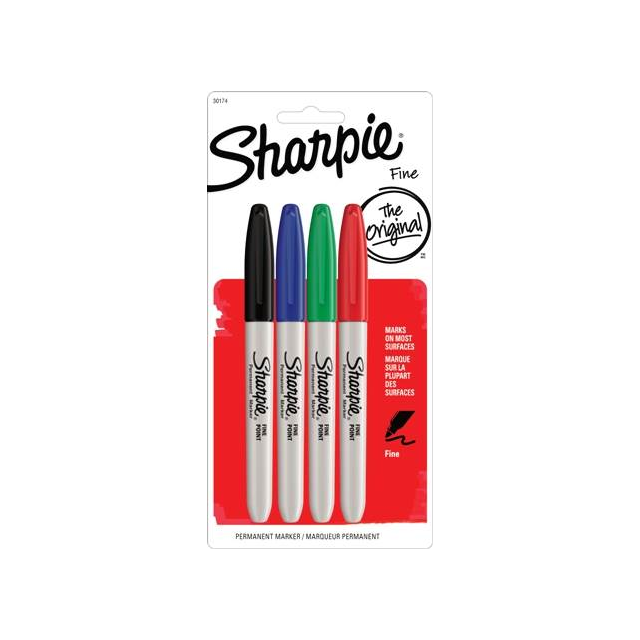 Sharpie Fine Point Markers permanently mark almost any surface. Ideal for use on glass, plastic, metal, wood, vinyl, photos etc. Tough polypropylene barrel, alcohol based, AP certified non-toxic, permanent ink with robust, fine tips in Ultra Fine (0.3mm) and Fine (1.0mm) tips . Will not dry out if left uncapped for 30 mins - just recap and recover overnight!