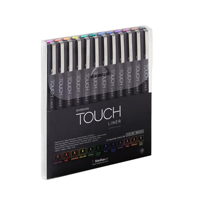 SHINHAN TOUCH LINER BRUSH ASSORTED COLOUR SET OF 12 |