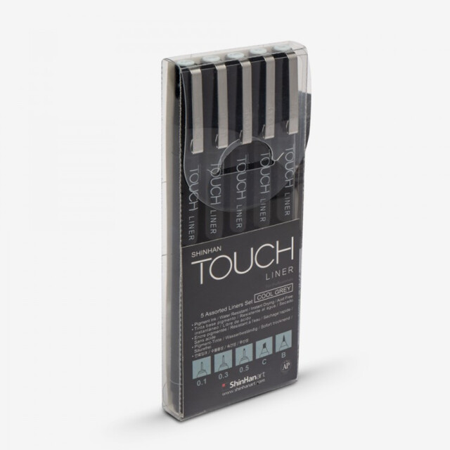 SHINHAN TOUCH 5 GREY FINELINERS SET OF 5 ASSORTED TIPS |
