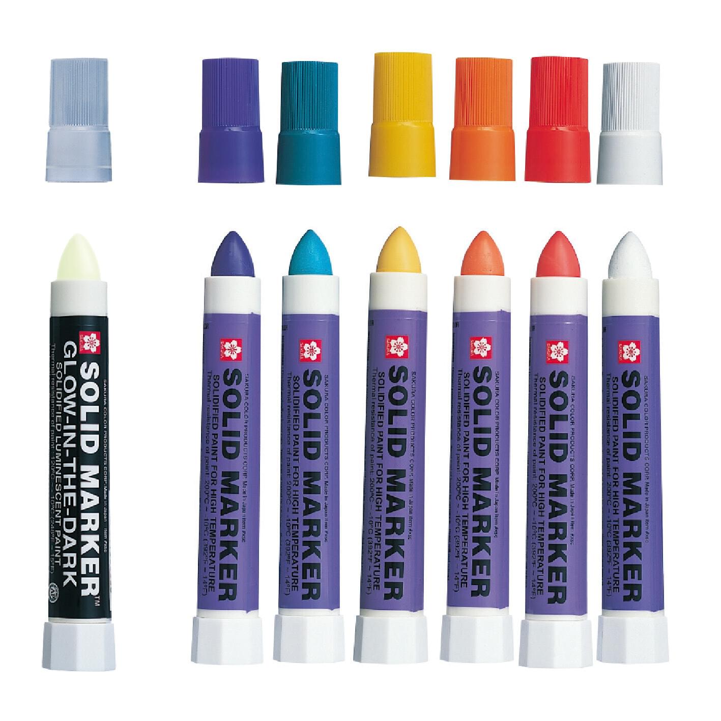 Sakura Solid Markers are a solidified paint stick has many artistic applications. Ideal for drawing and sketching where a bold, permanent, opaque result is required. Solid Markers are quick drying and won't rub off like chalk or drip like paint, yet can be left uncapped for up to one hour.