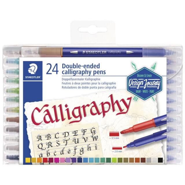 Staedtler Calligraphy markers deliver bright and vibrant colours – perfect for lettering, decorative designs, greeting cards, scrapbooking and papercrafting. Containing acid-free, lightfast, pigmented ink, the double-ended markers feature 2 versatile lettering tips - 3.5 mm and 2.0 mm calligraphy nibs. No umping or shaking is required.