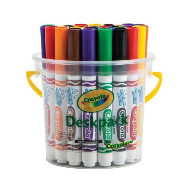 CRAYOLA WASHABLE BROADLINE CLASSIC MARKER DESKSET OF 32 ASSORTED COLOURS. Set contains 4 each of 8 popular colours. |