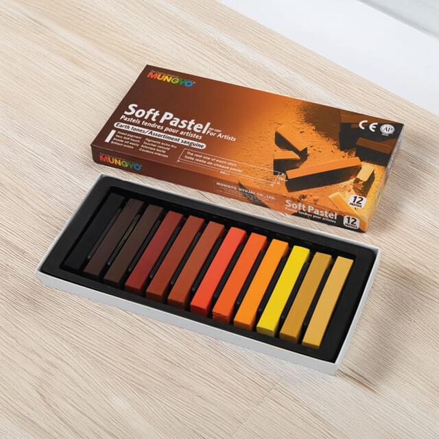 A very good quality, medium soft, square pastel manufactured from high quality pigments and other raw materials. They are characterized by a smooth, consistent feel. They offer powerful colour laydown, easy blending and are affordably priced. The colours are highly light resistant. Non toxic. Conforms to EN71-3 and ASTM D4236.