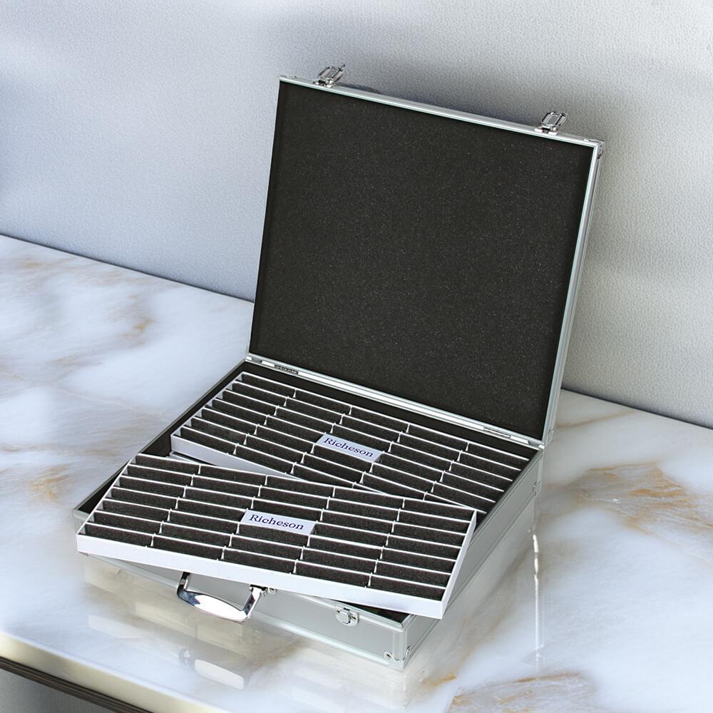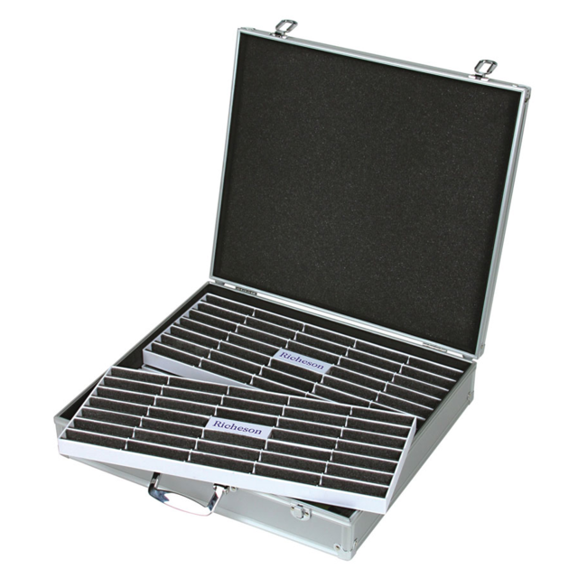 *RICHESON ALUMINIUM PASTEL CASE. Roz boxes are equipped with comfortable, solid metal carry handles and secure metal clamps to ensure that the case stays closed during transport. This box is supplied complete with 4 pastel organiser trays with foam insert . Holds up to 136 pastels. |