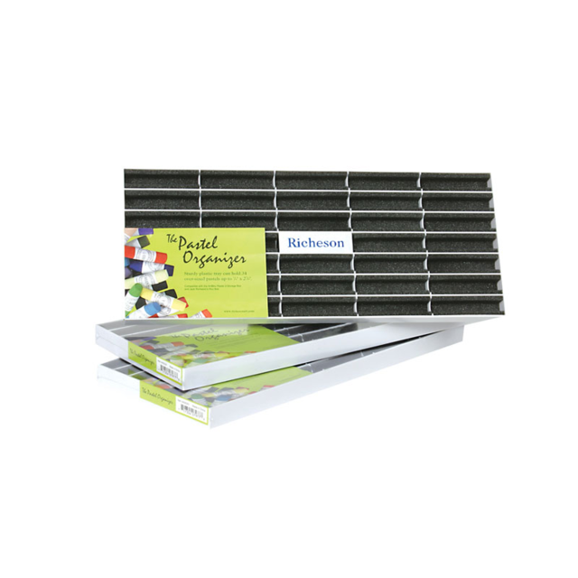 *RICHESON PASTEL ORGANISER TRAY. Features 34 foam plastic lined pastel slots with a centre finger grip for easy pick-up and movement. Pastel organiser trays are stackable and can be used in in the Artbin Pastel 3 box and the Roz pastel boxes and bags. |