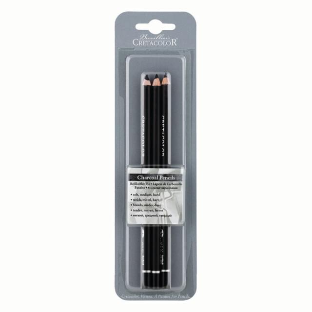 CR46088 CR46088 CRETACOLOR CHARCOAL PENCIL BLISTER CARD-3 Assorted. Ideal for portraits, landscapes and general sketching.This blister carded set contains 1 each of soft, medium and hard. In stock Login For Price