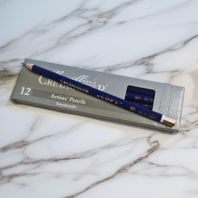Cretacolor Copy Pencils feature colour strips for permanent marking of any absorbent surface with an indelible mark which is water-soluble but remains resistant to most solvents. They are often referred to as a bottle of ink in a pencil as its mark cannot be completely erased. This feature is used by artists and designers for outlining a design on paper then over-painting with a water based background colour. Because the colour strip is water-soluble the pencil markings will bleed through an opaque colour to disclose the original lettering or design for completion.