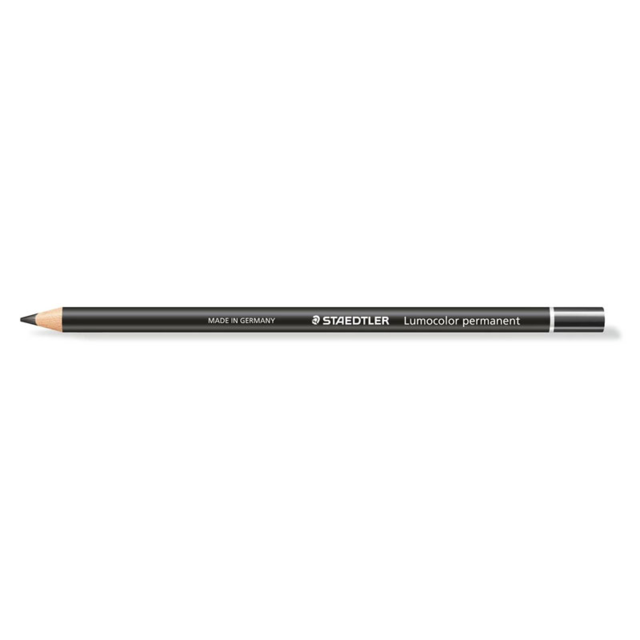 Staedtler Lumocolor Glasochrom pencils are waterproof wood-cased pencil ideal for opaque marking on almost all surfaces, even on dark or transparent ones, e.g. paper, plastic, metal, glass, wood, leather and stone. No bleeding through paper. Non-corrosive colour pigments. Wood from certified, sustainably managed forests.