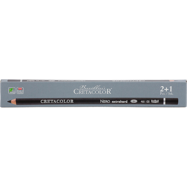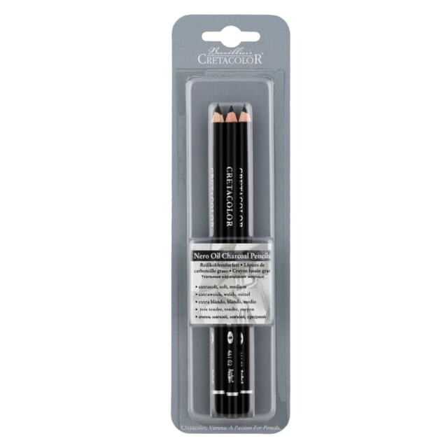 CR46189 CR46189 CRETACOLOR NERO PENCIL BLISTER CARD-3 Assorted. This blister carded set of 3 contain 1 Nero carbon pencil each in extra soft, soft and medium. In stock Login For Price