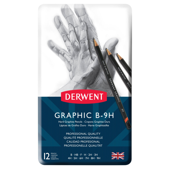 DERWENT GRAPHIC TECHNICAL GRAPHITE PENCIL TIN OF 12. Technical set contains one pencil each in the grades B - 9H. |