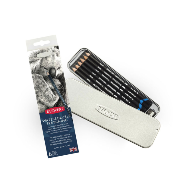 D700837 D700837 DERWENT WATERSOLUBLE GRAPHITE SKETCH PENCIL TIN 6. Contains 2 sketching pencils each in the grades HB, 4B and 8B plus pencil sharpener. In stock Login For Price