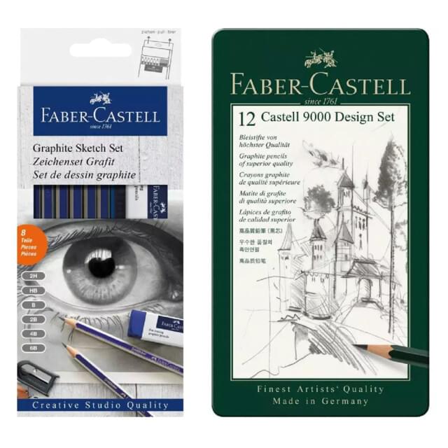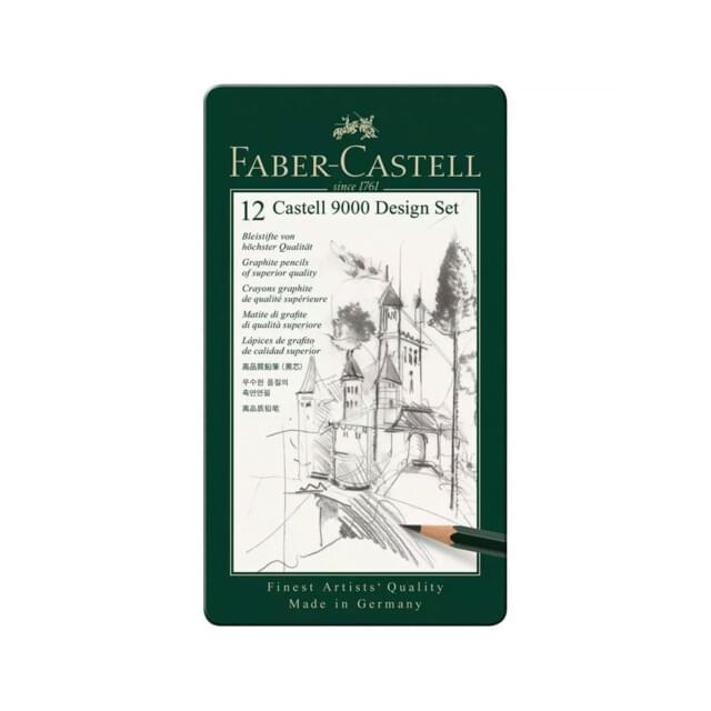 FABER-CASTELL 9000 GRAPHITE PENCIL ARTIST SET. High quality graphite pencils. This set contains grades 8B - 2H. |