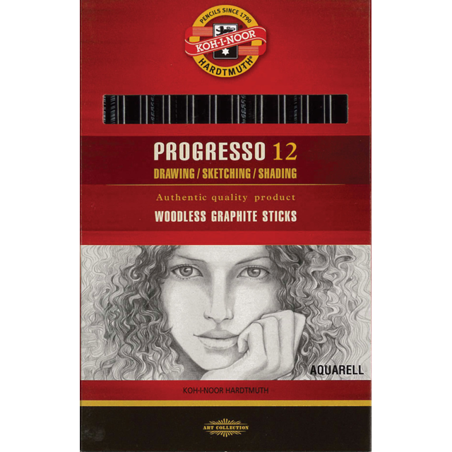 PRO8912 PRO8912 PROGRESSO Graphite AQUARELLE BOX OF 12. Readily soluble in water to produce from the most subtle to the most bold washes in grey tones. In stock Login For Price