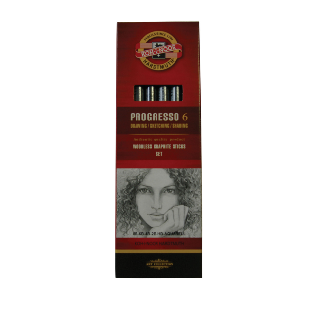 PRO8915 PRO8915 PROGRESSO SKETCHING SET-6 ASSORTED GRADES. This set contains one stick each of the standard and water-soluble Progresso pencils. In stock Login For Price