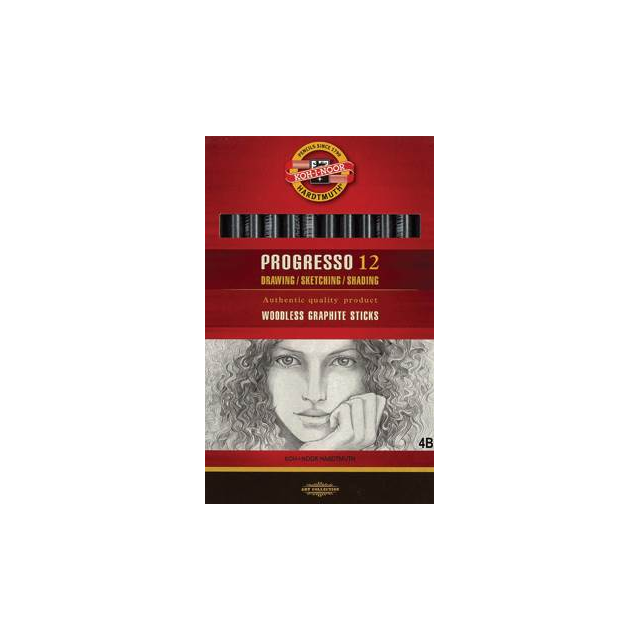 Progresso Woodless Graphite pencils are pure, solid, graphite sticks thinly coated with plastic. Recommended for portrait and landscape work.