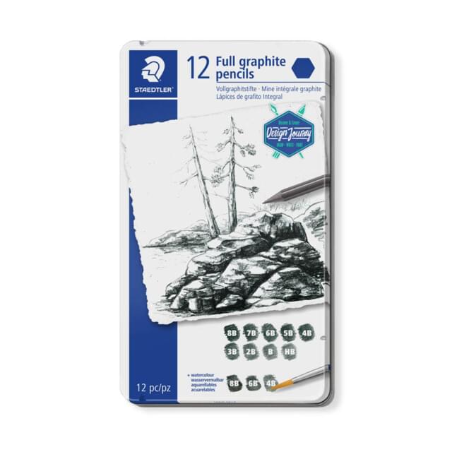 ST100GM12 ST100GM12 STAEDTLER LUMOGRAPH WOODLESS GRAPHITE PENCIL Tin 12 Contains one pencil each of the woodless graphite pencil grades 8B, 7B, 6B, 5B, 4B, 3B, 2B, B and HB plus aquarell grades 4B,6B and 8B. Please note item with descriptions prefixed # are special order products and generally available within a few days following receipt of your order. In stock Login For Price