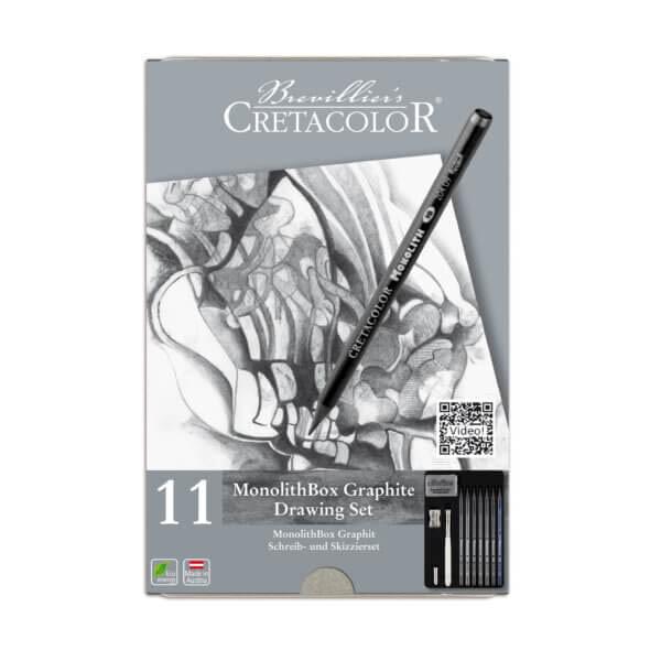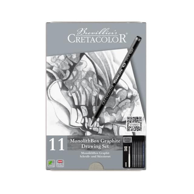 CR20430 CR20430 CRETACOLOR MONOLITH (PROGRESSO) WOODLESS GRAPHITE 11 PIECE TIN SET. Contains 1 each Monolith Woodless Graphite Pencil in grades HB, 2B, 4B, 6B, 8B & 9B and 1 each Aqua Monolith Woodless Graphite Aquarelle Pencil, Pencil Extender, Pencil Cap, Metal Pencil Sharpener and a Kneaded Eraser. In stock Login For Price