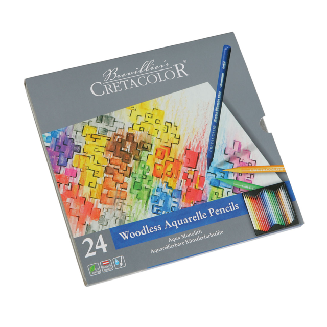 AQUA MONOLITH WOODLESS WATERCOLOUR PENCIL Tin 24 ASSORTED COLOURS. |
