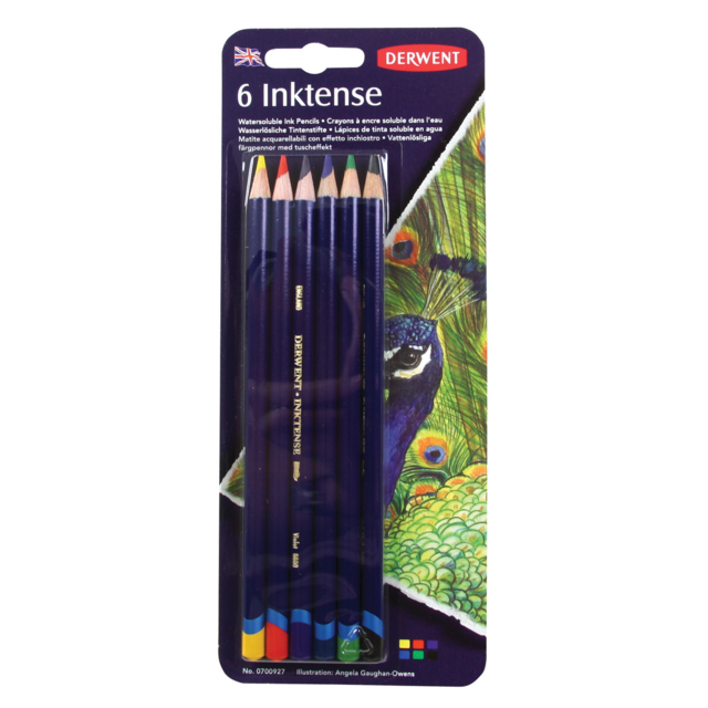 DERWENT INKTENSE PENCIL BLISTER CARD SET 6 COLOURS including sun yellow, poppy red, violet, bright blue, field green and ink black. |