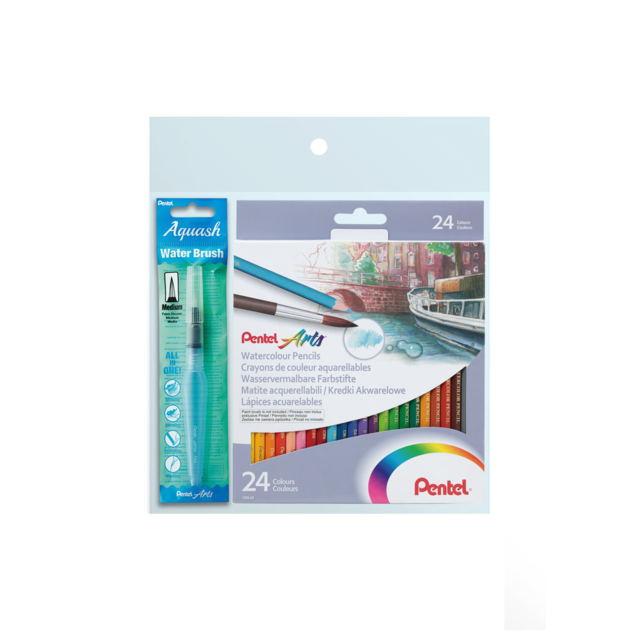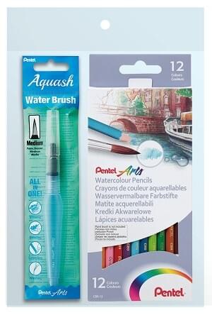 Highly pigmented and fade-resistant water soluble pencils that blend beautifully when water is added. Bonus waterbrush included in set.