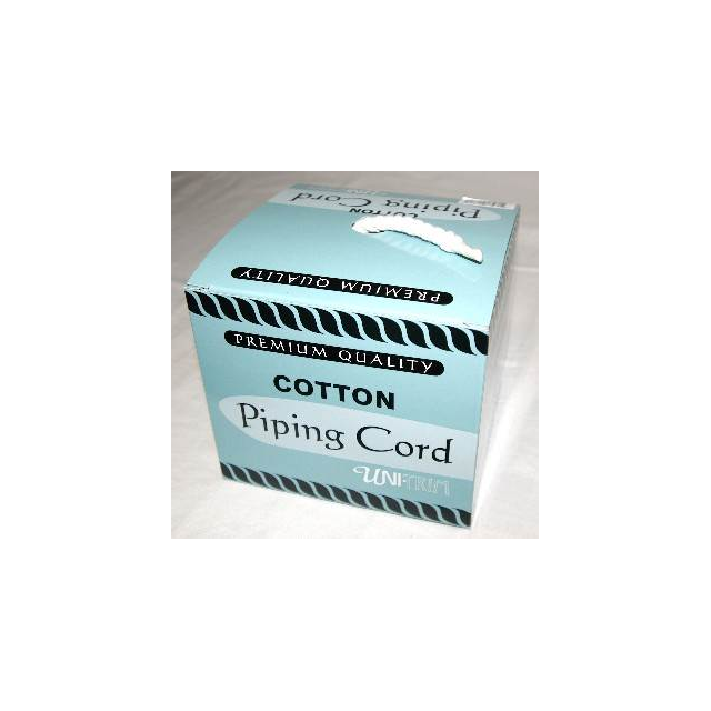 PIPING CORD SIZE 5 - 25m A soft, 3 ply twisted, 5-7mm white cotton cord for garment and craft projects requiring a drawstring to complete. |