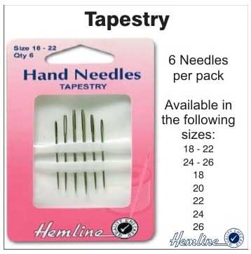 NEET1822 NEET1822 TAPESTRY NEEDLE 18/22-Card 6 ASSORTED SIZES. Blunt with large eye for tapestry. In stock Login For Price