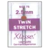 NEEMTS25 NEEMTS25 MACHINE NEEDLE TWIN STRETCH 2.5mm. Designed specially for two way stretch knits, lycra, silk jersey, spandex and other highly elasticised synthetic fabrics. In stock Login For Price