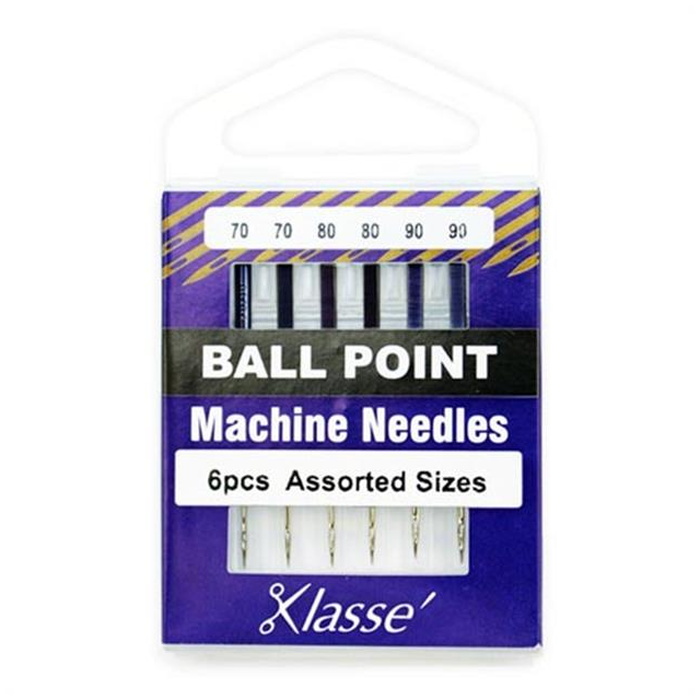 NEEMBPAS6 NEEMBPAS6 BALLPOINT MACHINE NEEDLE PACK OF 2 EACH SIZES 70, 80 & 90. Ballpoint machine needles have a more rounded point than the standard/universal needle, to push the fabric fibres apart, preventing laddering or running and are designed for use with knitted, jersey and interlocked fabrics. In stock Login For Price