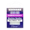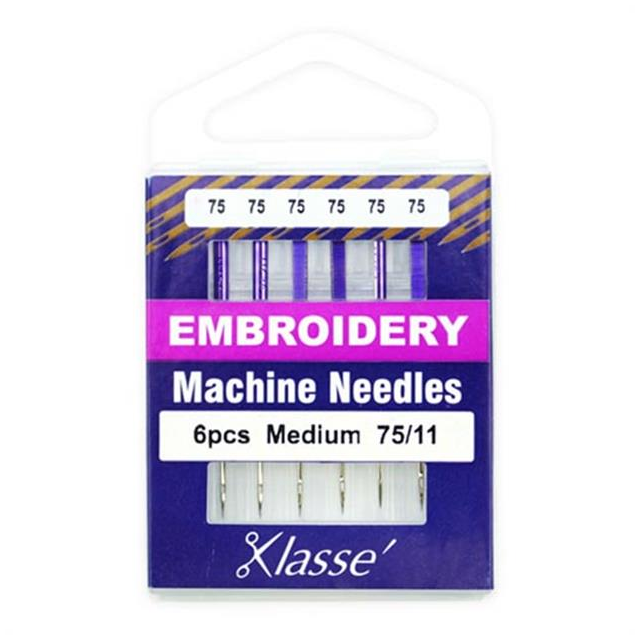 NEEMEM075 NEEMEM075 EMBROIDERY MACHINE NEEDLE #75 PACK OF 6. Embroidery needles are specially designed with a larger scarf and thread eye. These two parts ensure that the needle is not causing undue strain on the embroidery thread and are always preferable to regular sewing needles when doing embroidery work. In stock Login For Price
