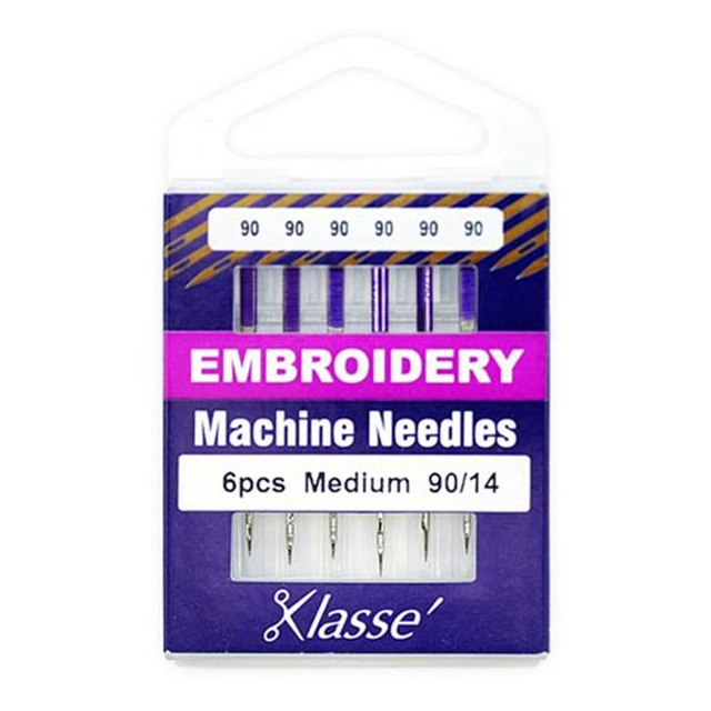 NEEMEM090 NEEMEM090 EMBROIDERY MACHINE NEEDLE #90 PACK OF 6. Embroidery needles are specially designedwith a larger scarf and thread eye. These two parts ensure that the needle is not causing undue strain on the embroidery thread and are always preferable to regular sewing needles when doing embroidery work. In stock Login For Price