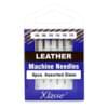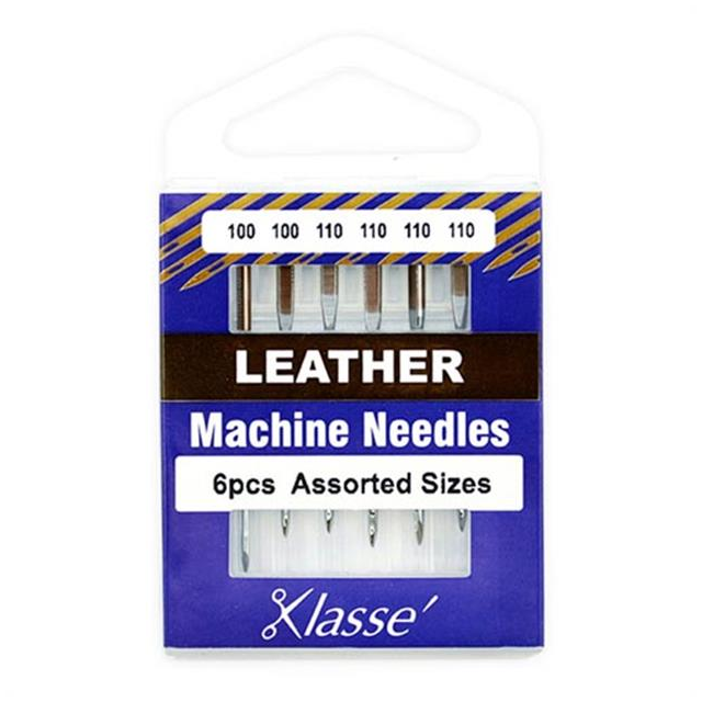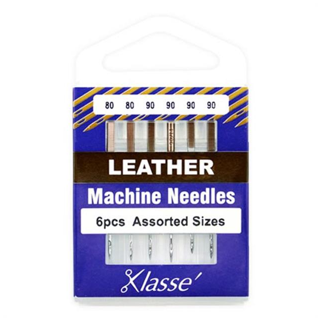 NEEMLEAS1 NEEMLEAS1 KLASSE LEATHER 2x#80+4x#90 MACHINE NEEDLE PACK OF 6 Leather needles feature a spear-shaped point to help cut the leather as the stitch is being formed. If you try to sew leather or faux leather with an ordinary needle the machine will struggle. So by using a designated leather needle the machine will be able to sew more easily. In stock Login For Price