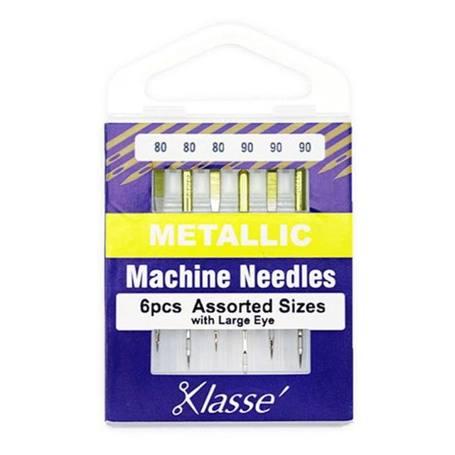 NEEMMEAS6 NEEMMEAS6 KLASSE METALLIC THREAD MACHINE NEEDLE PACK OF 6 ASSORTED Metallic threads can create wear grooves in the eye of the machine needle, which then snag the thread causing it to shred or break. Metallic thread needles have a larger and specially coated eye to allow threads to feed freely without splitting, burring or shredding. Assortment includes 3x#80 and 3x#90. In stock Login For Price