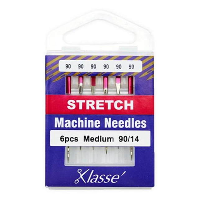 NEEMST090 NEEMST090 KLASSE STRETCH MACHINE NEEDLE #90 PACK OF 6. These Klasse stretch machine needles are designed especially for 2 way stretch knits such as lycra, jersey, spandex and highly elastic synthetic fabrics to prevent skipped stitches. They feature rounded points that penetrate between fabric threads rather than pierce them. The stretch needle point is slightly less rounded than a ballpoint machine needle point. In stock Login For Price