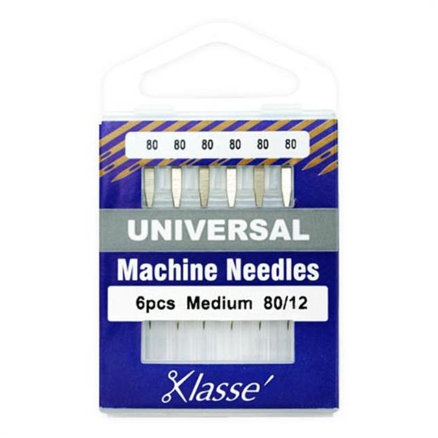 NEEMUN080 NEEMUN080 KLASSE UNIVERSAL MACHINE NEEDLE #80 Pack 6. All-purpose machine needles featuring slightly rounded points designed to penetrate the fabric threads of woven fabrics. Suitable for 99% of all domestic sewing machines and a wide variety of woven and knitted fabrics. In stock Login For Price