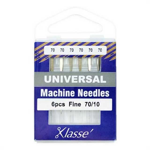 NEEMUN070 NEEMUN070 KLASSE UNIVERSAL MACHINE NEEDLE #70 Pack 6. All-purpose machine needles featuring slightly rounded points designed to penetrate the fabric threads of woven fabrics. Suitable for 99% of all domestic sewing machines and a wide variety of woven and knitted fabrics. In stock Login For Price