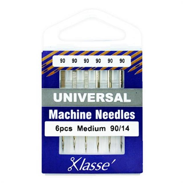 NEEMUN090 NEEMUN090 KLASSE UNIVERSAL MACHINE NEEDLE #90 Pack 6. All-purpose machine needles featuring slightly rounded points designed to penetrate the fabric threads of woven fabrics. Suitable for 99% of all domestic sewing machines and a wide variety of woven and knitted fabrics. In stock Login For Price