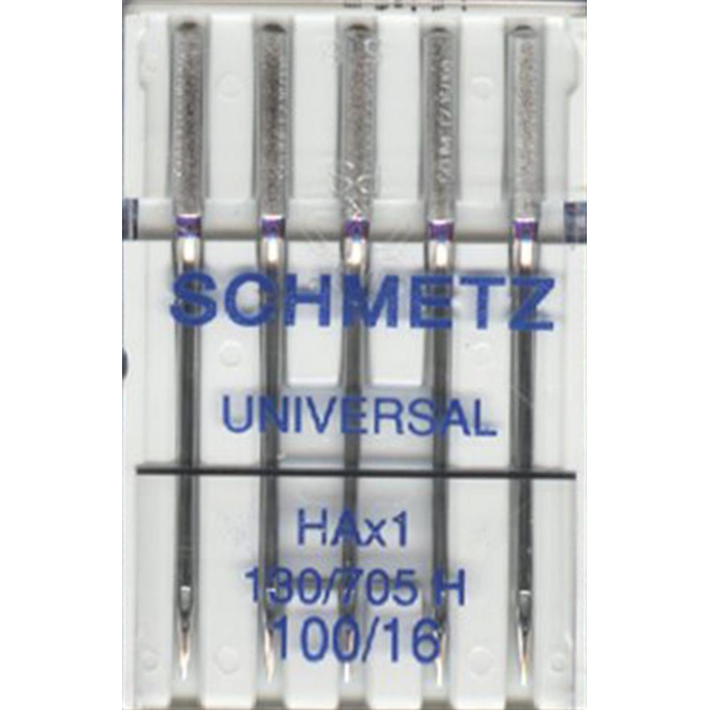 NEEMUN100 NEEMUN100 SCMETZ UNIVERSAL MACHINE NEEDLE #100 Pack 5. All-purpose machine needles featuring slightly rounded points designed to penetrate the fabric threads of woven fabrics. Suitable for 99% of all domestic sewing machines and a wide variety of woven and knitted fabrics. In stock Login For Price