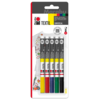 MC116000 MC116000 MARABU TEXTIL PAINTER FINE1-2mm BASIC COLOUR SET OF 5. This fineline set includes yellow, cherry red, rich green, dark blue and black. In stock Login For Price