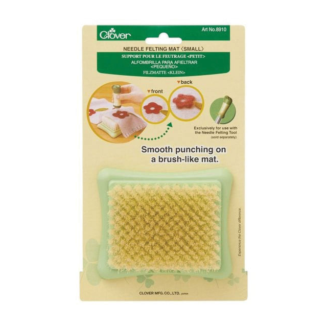 FELMS FELMS *CLOVER SMALL 7x9cm DRY FELTING MAT.The brush-like bristle mat enables smooth needle punching with little resistance allowing the fibres of the appliqued wool tops to become well meshed with the basic fabric. The mat bristle length provides the ideal hardness and density for easy felting. Perfect for felting fanciwork pieces such as sweaters and woollen mufflers! In stock Login For Price